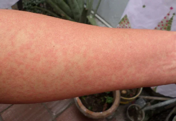 - обрив: обривният синдром се появява в началото на заболяването или няколко дни по-късно, успоредно с нормализиране на температурата. Обривите са макуло-папулозни, сърбящи. Те обхващат първоначално трупа и лицето, разпространяват се по крайниците, включително дланите и стъпалата. При тежките форми се установяват петехии. Липсват други прояви на хеморагична диатеза
