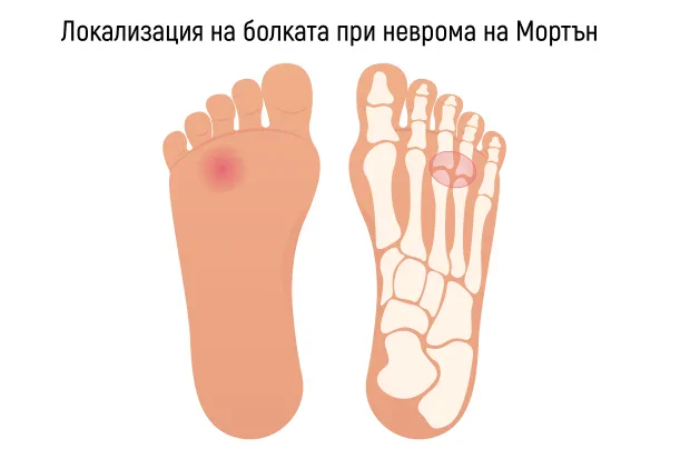- Смяна на обувките с подходящи: Преминаването към обувки с широко пространство за пръстите облекчава натиска върху засегнатия нерв и така подпомага възстановяването.